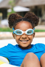 Finally, swimming goggles that don't pull my hair! The fabric headband is super comfortable!